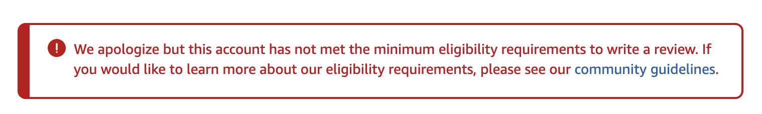 If you see a error message like the one below, it unfortunately means you're not eligible to leave Amazon reviews.