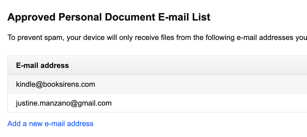 Add kindle@booksirens.com to your approved email list