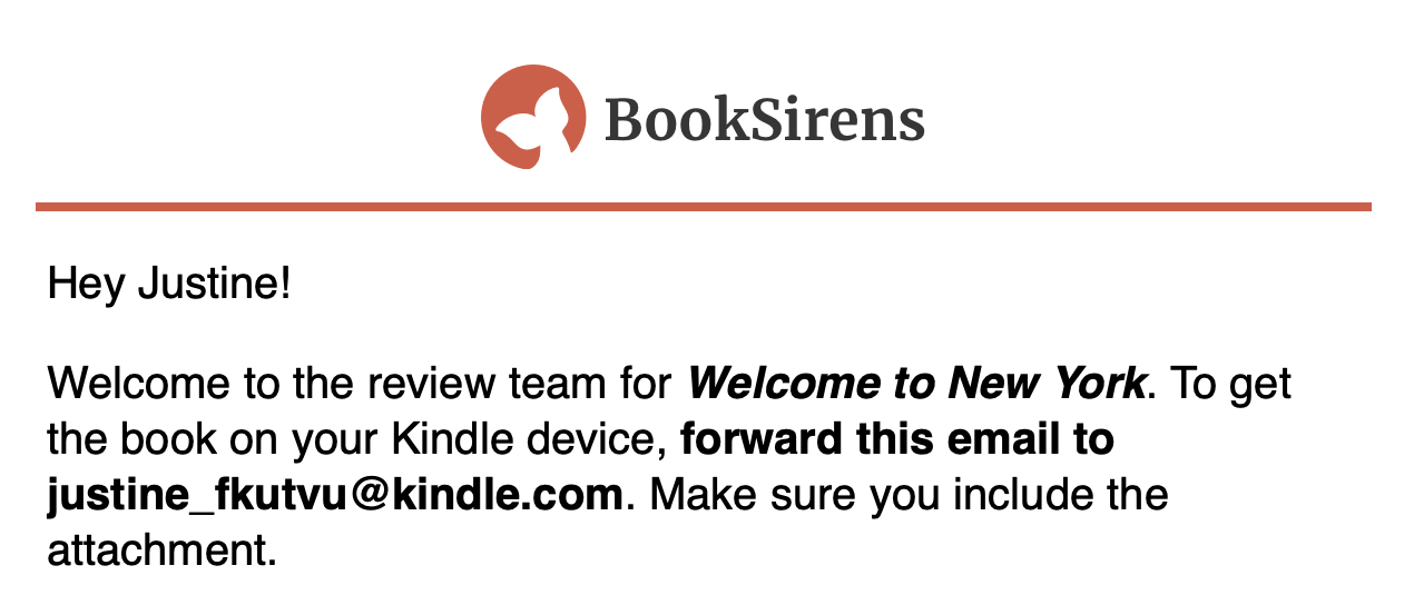 If it's your first time sending a book from BookSirens to your Kindle, follow the instructions in First Time Setup. Otherwise, you can skip to the next section, Send Book To Kindle.