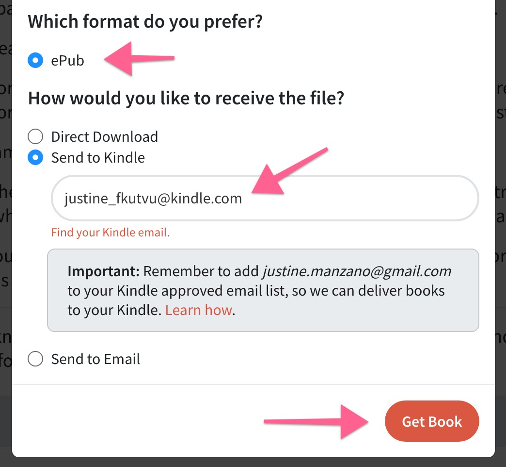 - Enter the Kindle email address you found above
